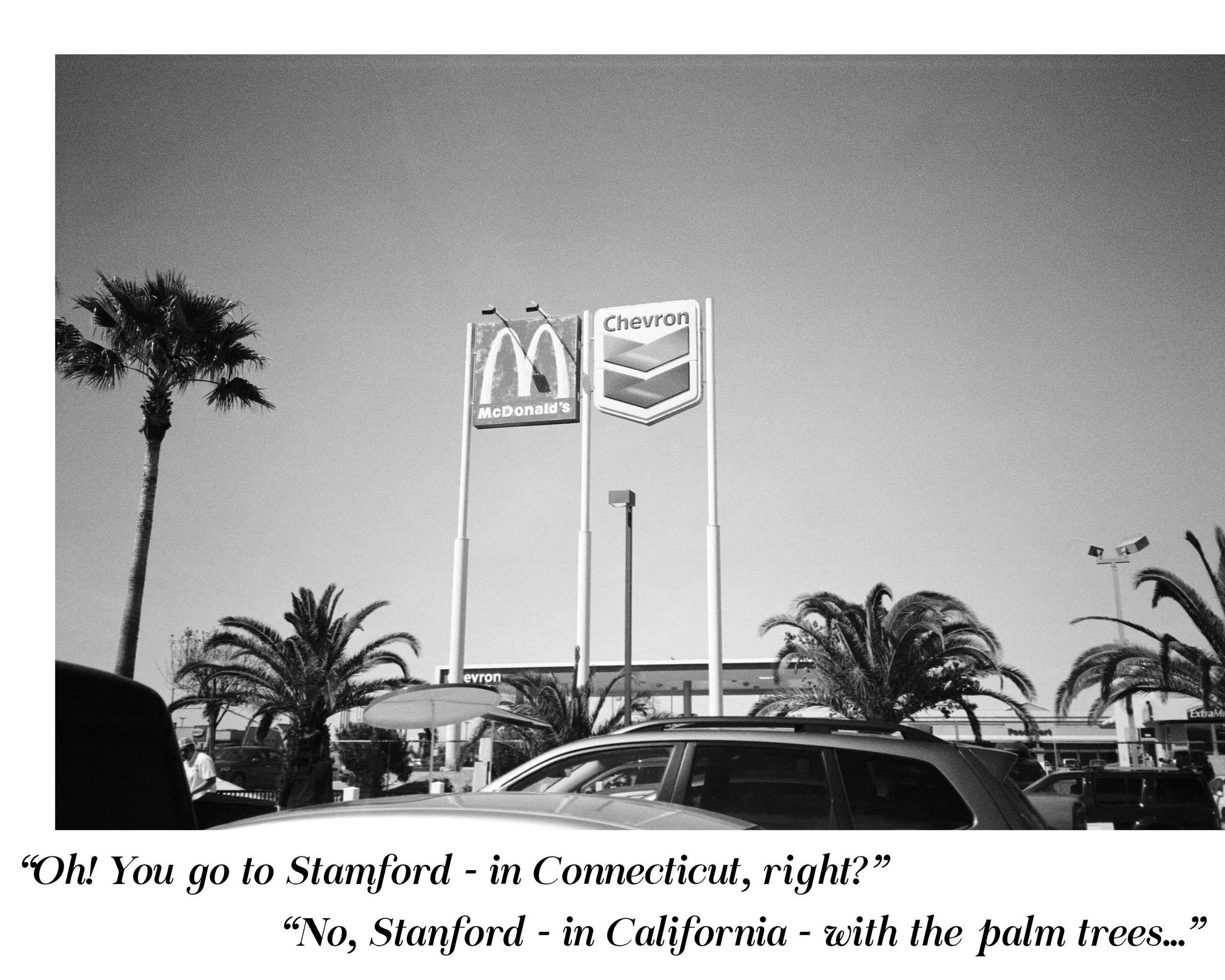 My desire was to make a work of art that played softly between the cursory inquiries and statements students make towards one another in relation to the Stanford experience.
